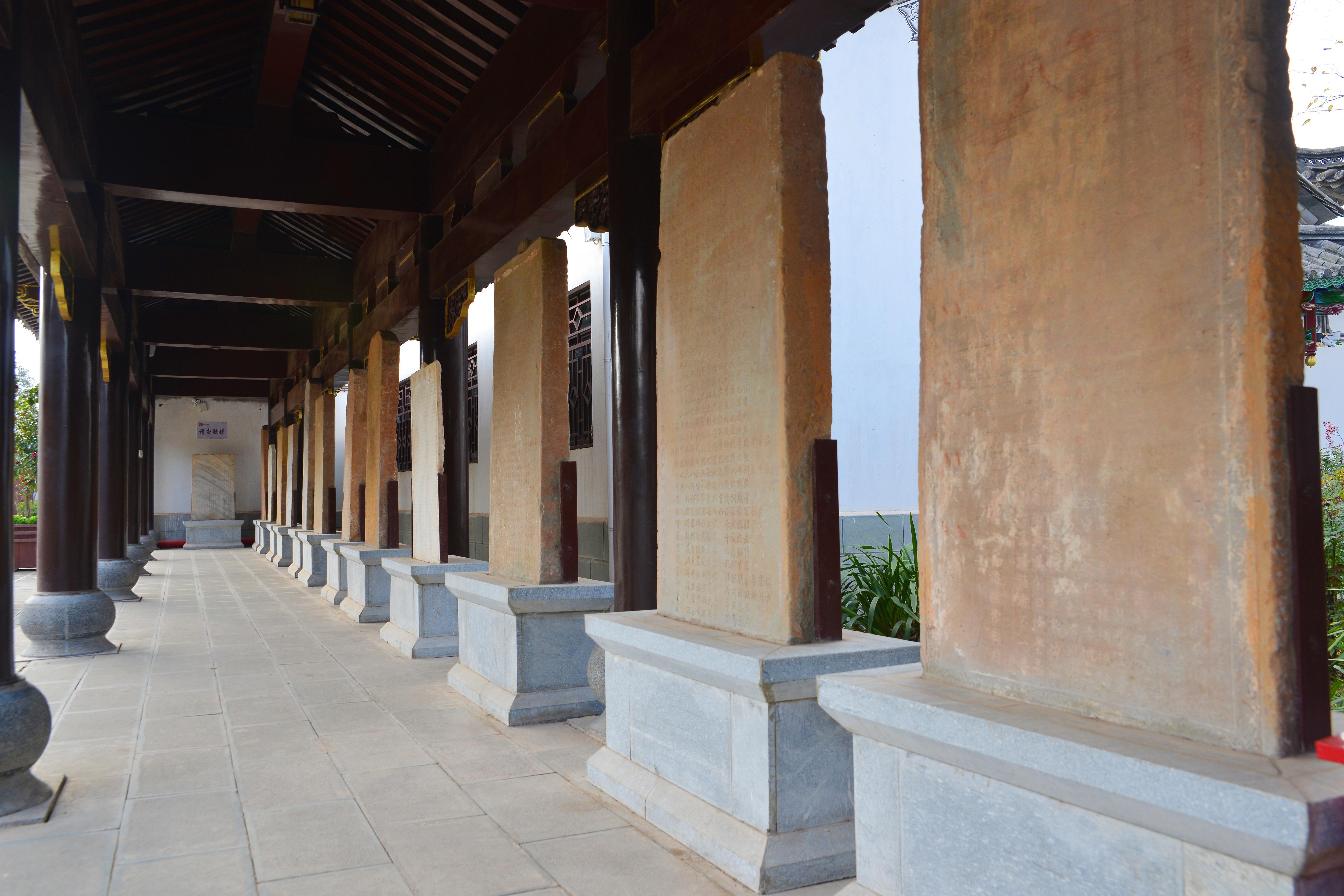 碑廊展出14通明清时代巍山较为有特点的碑刻,碑刻质地为沙石、大理石,有功德碑 、记事碑、书法碑、墓志铭等,具有重要的历史价值。