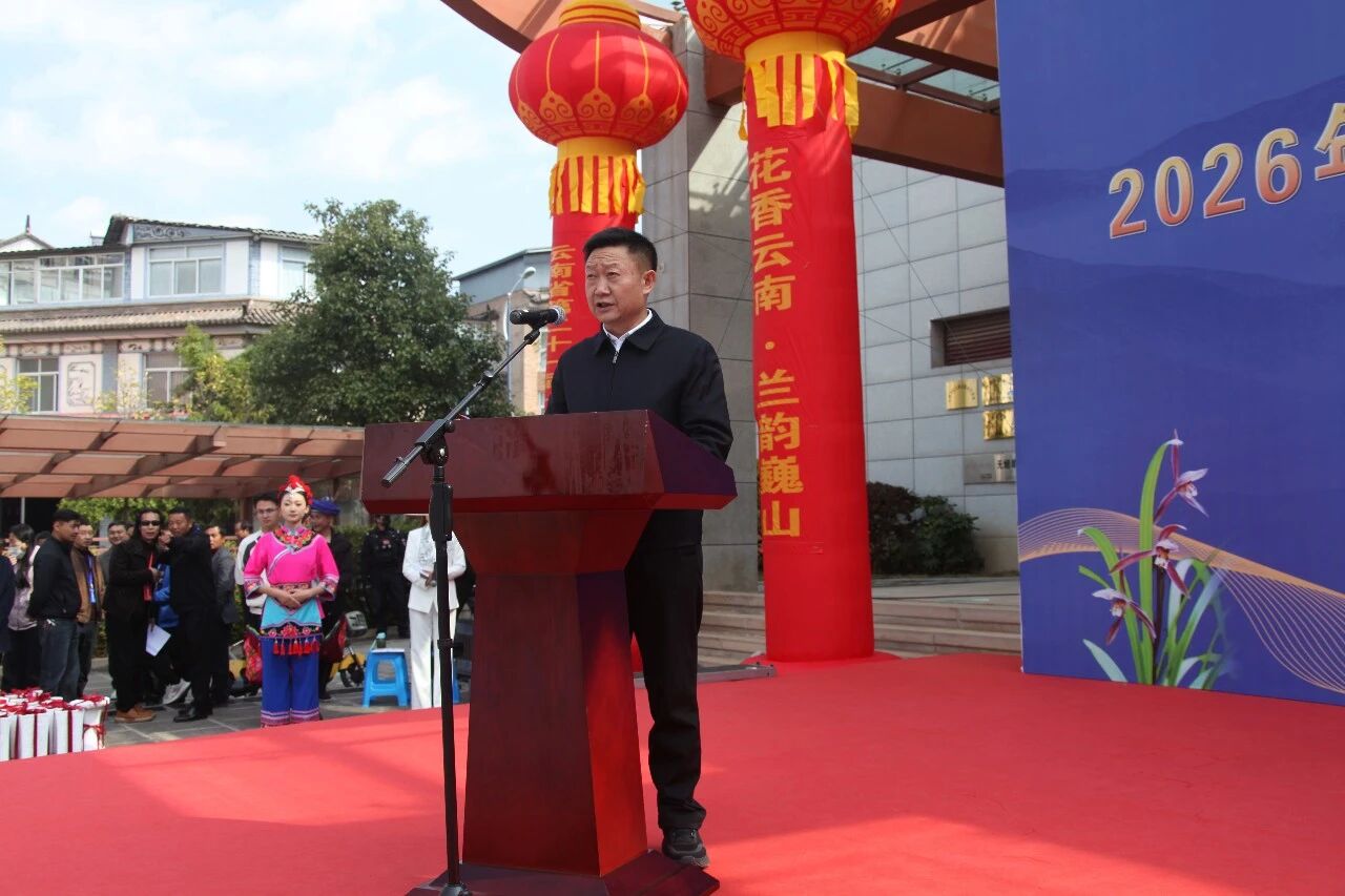 县委副书记、县长字文源出席开幕式并致辞。字文源在致辞说,云南省第二十一届兰花博览会花落巍山,既是对巍山兰花文化深厚底蕴的肯定,更是对巍山兰花产业发展潜力的期许。我们将借这次博览会的契机,进一步弘扬兰花文化,增进兰友交流,推动巍山兰花产业与文旅产业融合发展,让“巍山兰花”这张名片更加闪亮,让兰花真正成为富县兴业、香飘万家的“幸福花”。诚邀各位兰界专家、企业家以兰会友,在巍山这片沃土上寻找合作契机,共谋发展新篇,我们将全力为大家提供最优质的服务,最舒心的环境。