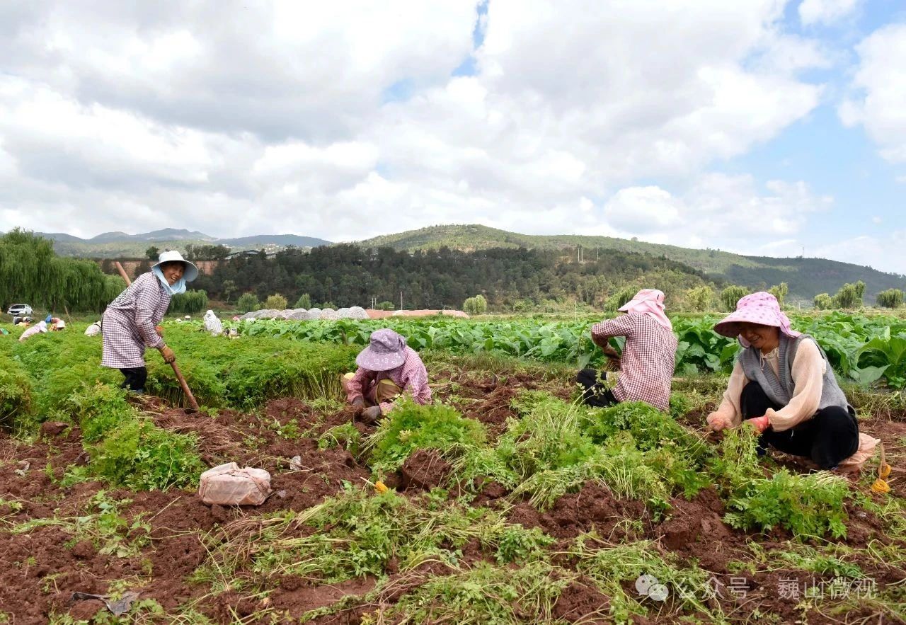 6月5日,巍山县庙街镇北桥村村民在中药材种植基地挖当归种苗。近年来,巍山县依托丰富的山地资源优势,通过“公司+合作社+基地+农户”的发展模式,扶持引导农民种植红花、重楼、当归等中药材,全面推进中药材产业发展,不断拓宽群众增收渠道,助力乡村产业振兴。