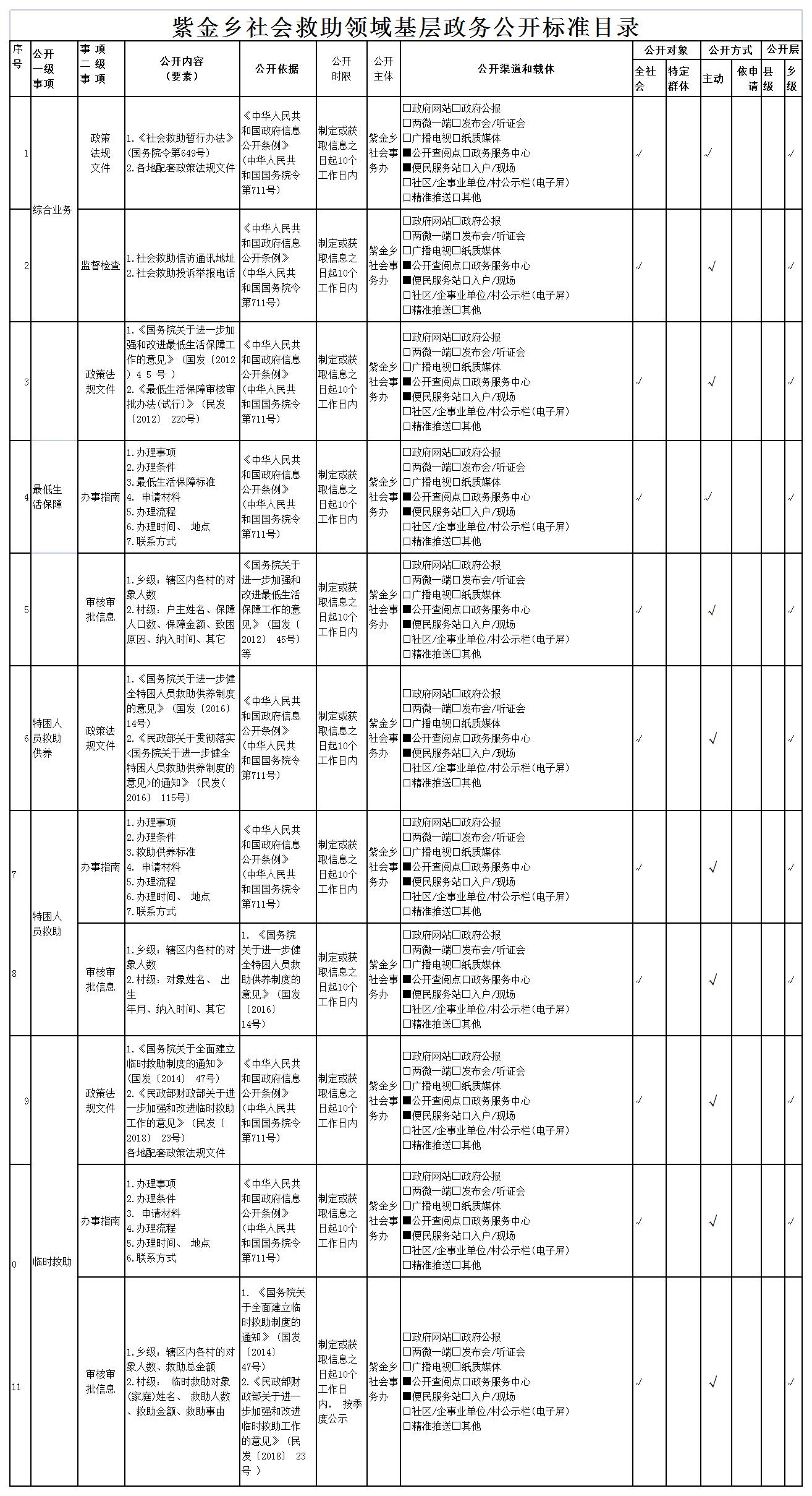 紫金乡社会救助领域政务公开标准目录