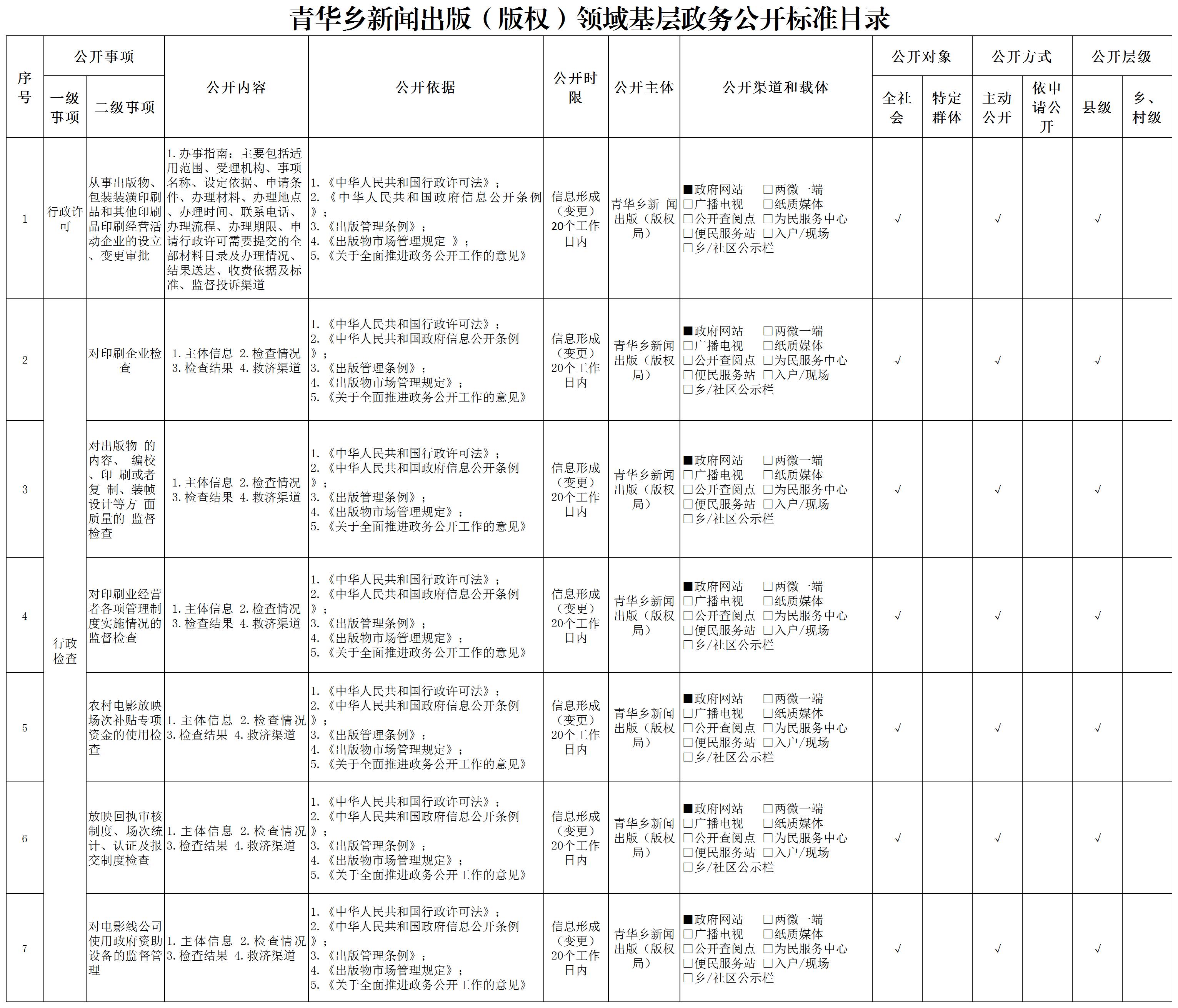 青华乡新闻出版(版权)领域基层政务公开标准目录