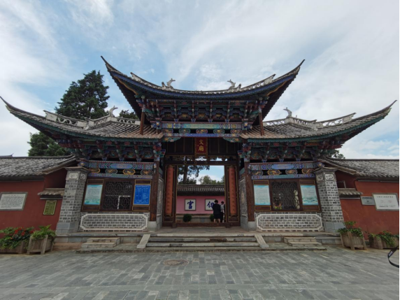 文庙始建于明洪武年间(1368—1398),明清两代均有增修,咸丰、同治间,杜文秀大理政权驻蒙化守将李芳园、马国忠扩建。民国初期设劝学所,1938年开办中学。文庙座北向南,规模宏大,占地一万多平方米,前设照壁,上镶“万仞宫墙”大理石匾,中轴线上依次为泮池、桥、棂星门、大成门、大成殿、雁塔坊、崇圣祠、尊经阁,东西二侧有名宦祠、兴文祠、学官署、承祭斋、乡贤祠、明伦堂、射圃等。现存大成门、大成殿、雁塔坊、崇圣祠、尊经阁、乡贤祠、明伦堂、射圃等。大成殿为单檐歇山顶,檐下设五踩重翅斗拱,面阔七间,前设月台,围以大理石栏,整个建筑庄严大方;雁塔坊为三开间的重檐歇山顶牌楼式建筑,檐下设斗拱,翼角飞展;明伦堂由前为卷棚、后为尖山的两个悬山顶建筑勾连组成,面宽三间,建筑高低错落,富于变化,六扇格子门雕刻工艺极其精湛;尊经阁为重檐歇山顶建筑,面宽三间,上下檐均设斗拱,出两跳,古为经籍收藏之所。