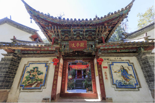 太子殿是西南地区典型的隼铆结构建筑,整个屋架由六根柱子支撑,不用一颗钉子和螺丝。殿很小,院子也很小,殿中有一尊太子神像,一个香炉,一个功德箱,一个跪拜的垫子,静静地在风风雨雨的岁月里存在着,展示出的面貌正如那句话述说的一样:在时光的洗礼中,过尽千帆依然坦荡,像一道温柔的光。