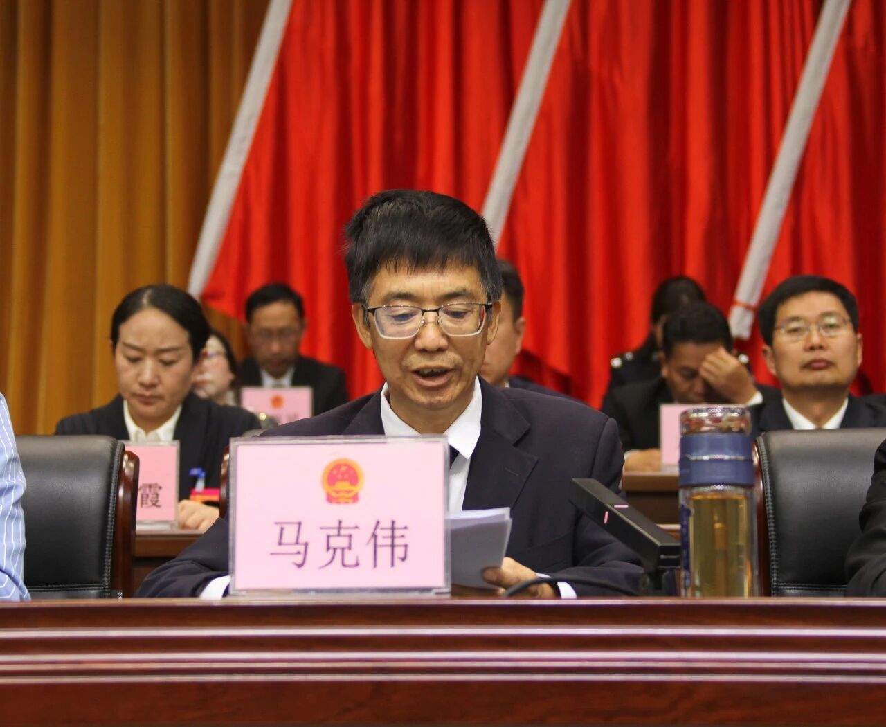 县人民政府县长字文源,县委副书记罗自军在主席台前排就座。