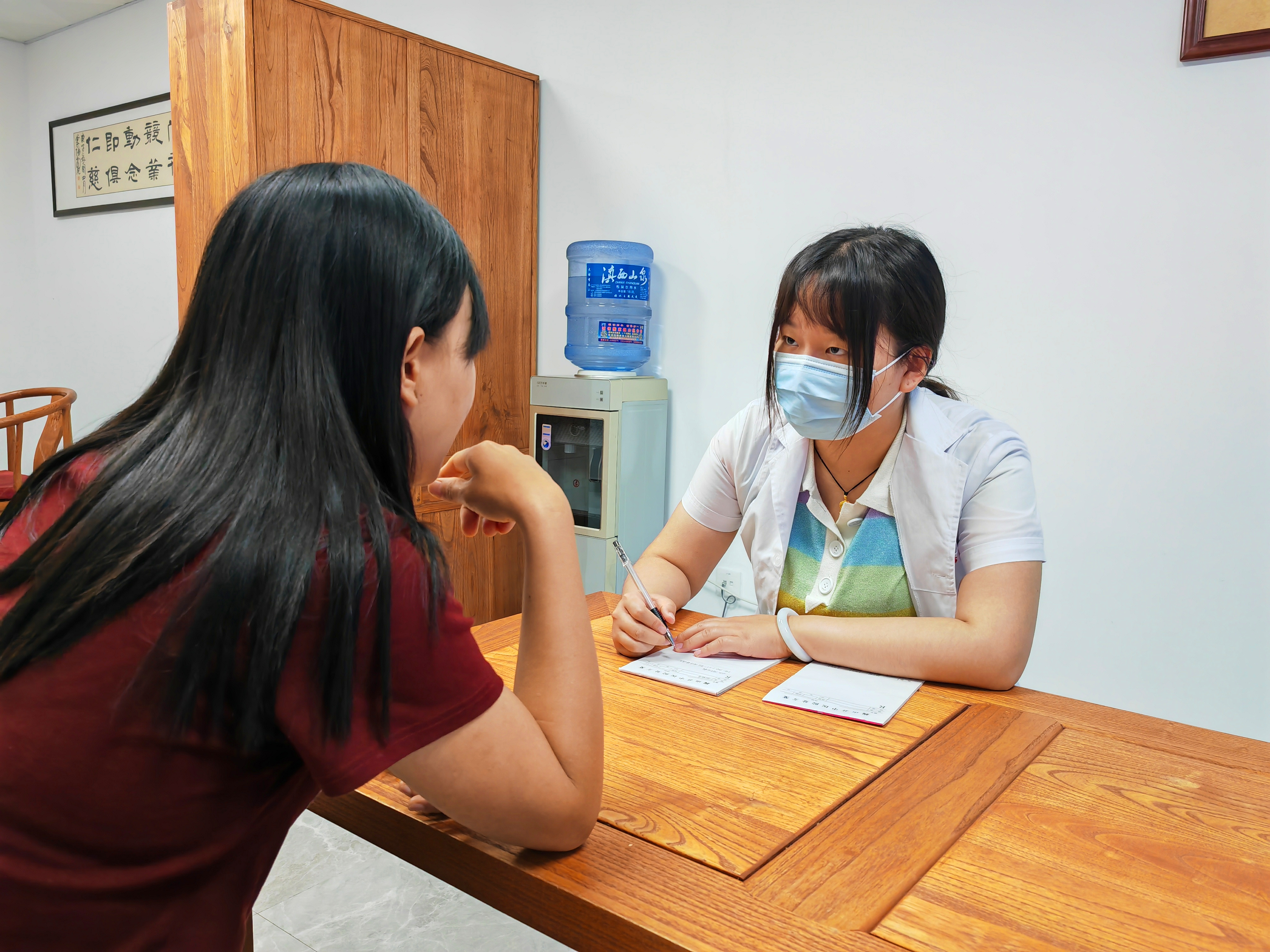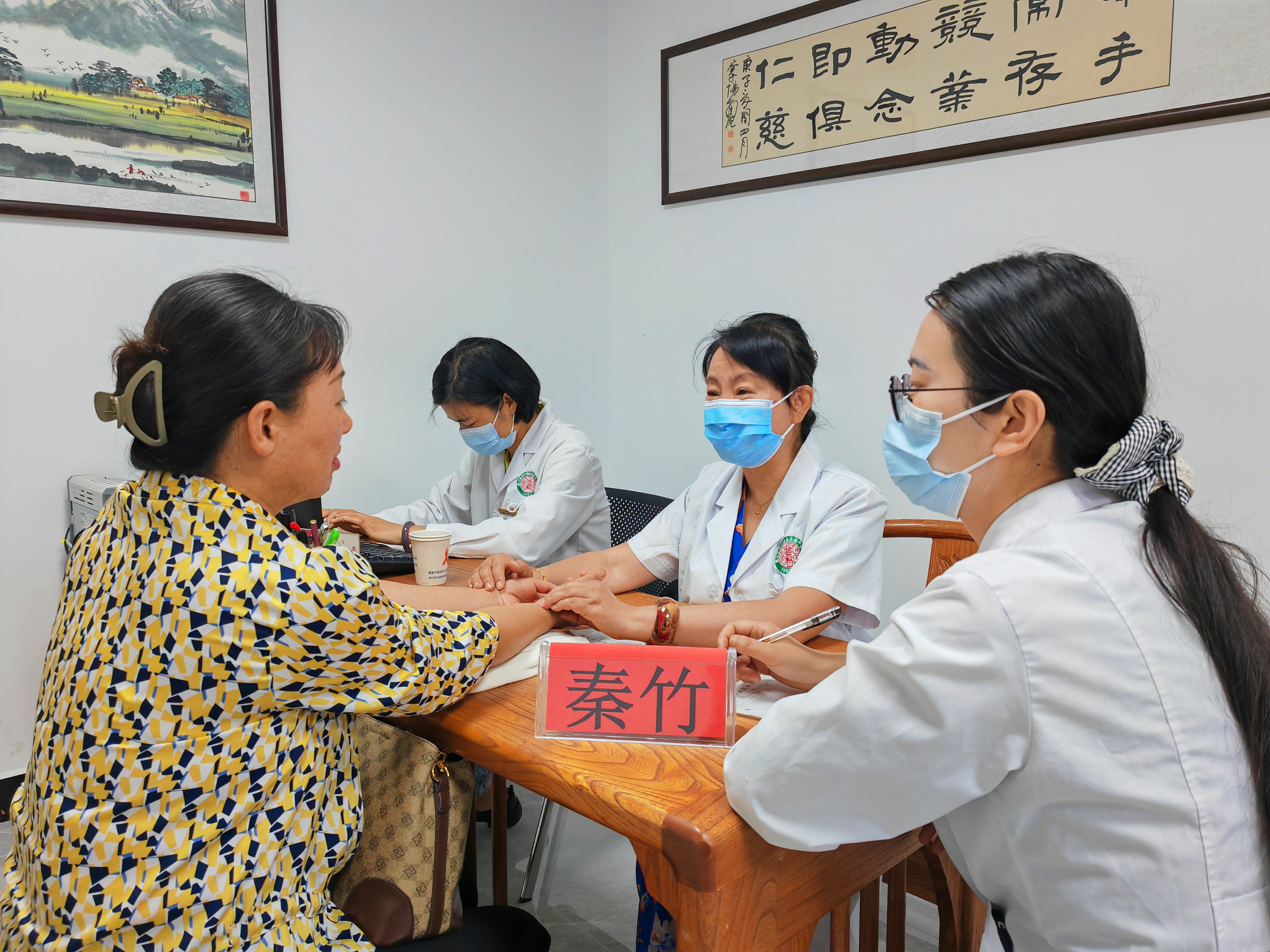 在县中医医院治未病科诊室,秦竹教授耐心细致地为患者进行现场把脉辨证,循根溯源地展开讲解,开具处方,并针对夏季常见病症的中医健康知识宣传、未病先防的重要意义以及合理用药等方面给予了指导。