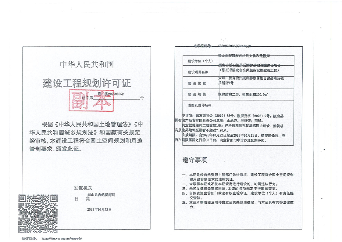巍山古城4A级景区旅游基础设施建设项目(崇正书院配套公共服务设施建设工程)建设工程规划许可证批后公开